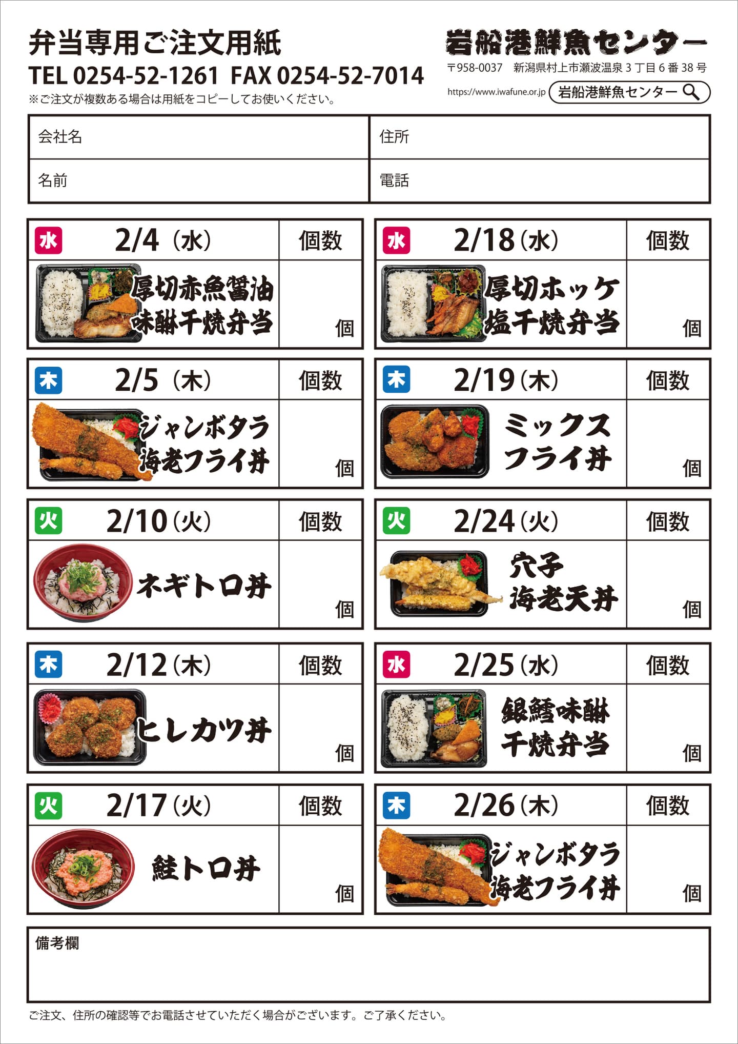 2026年2月弁当ご予約承ります。