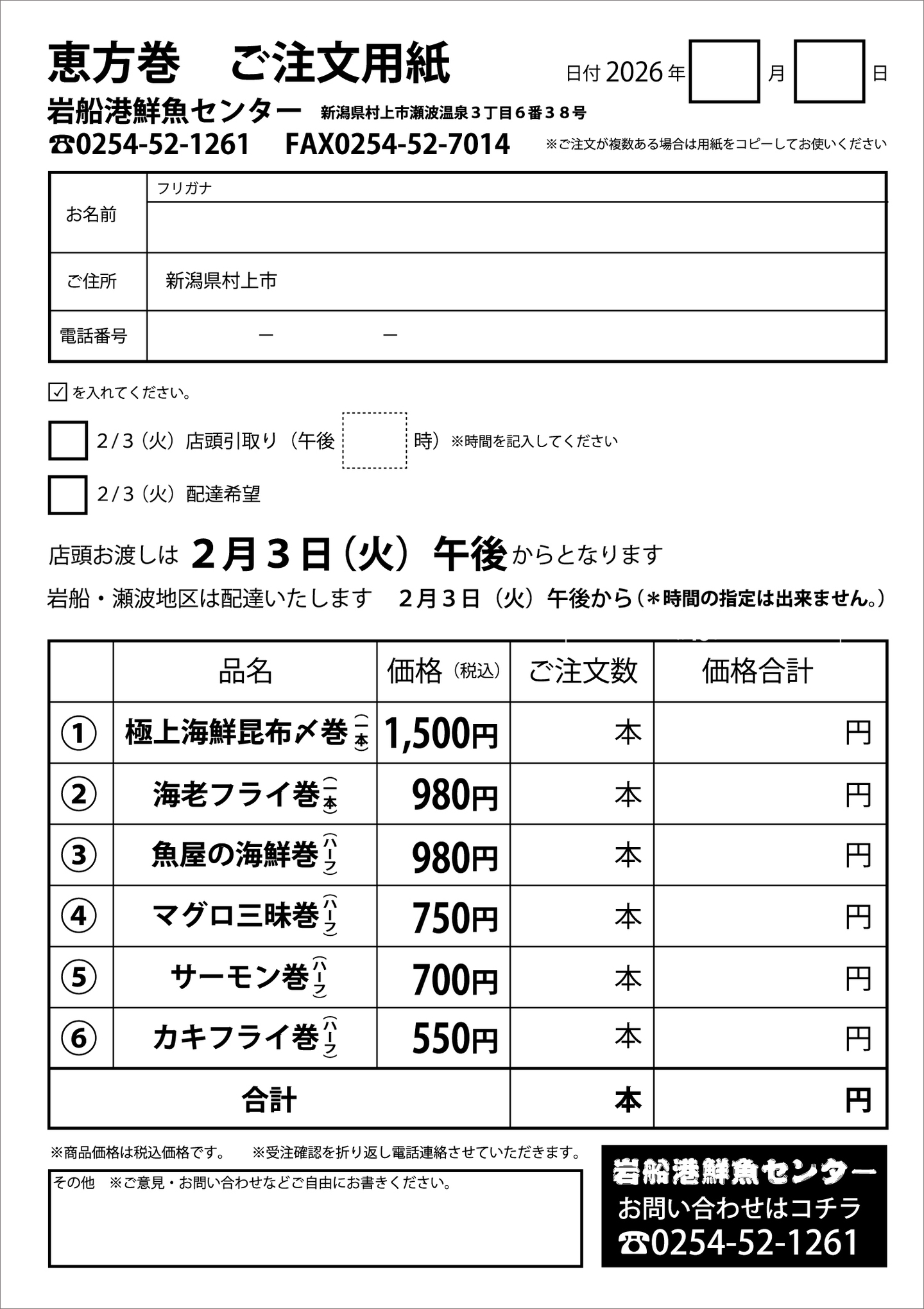 ※店頭引き渡し・配達日は2026年2月3日(火)となります。