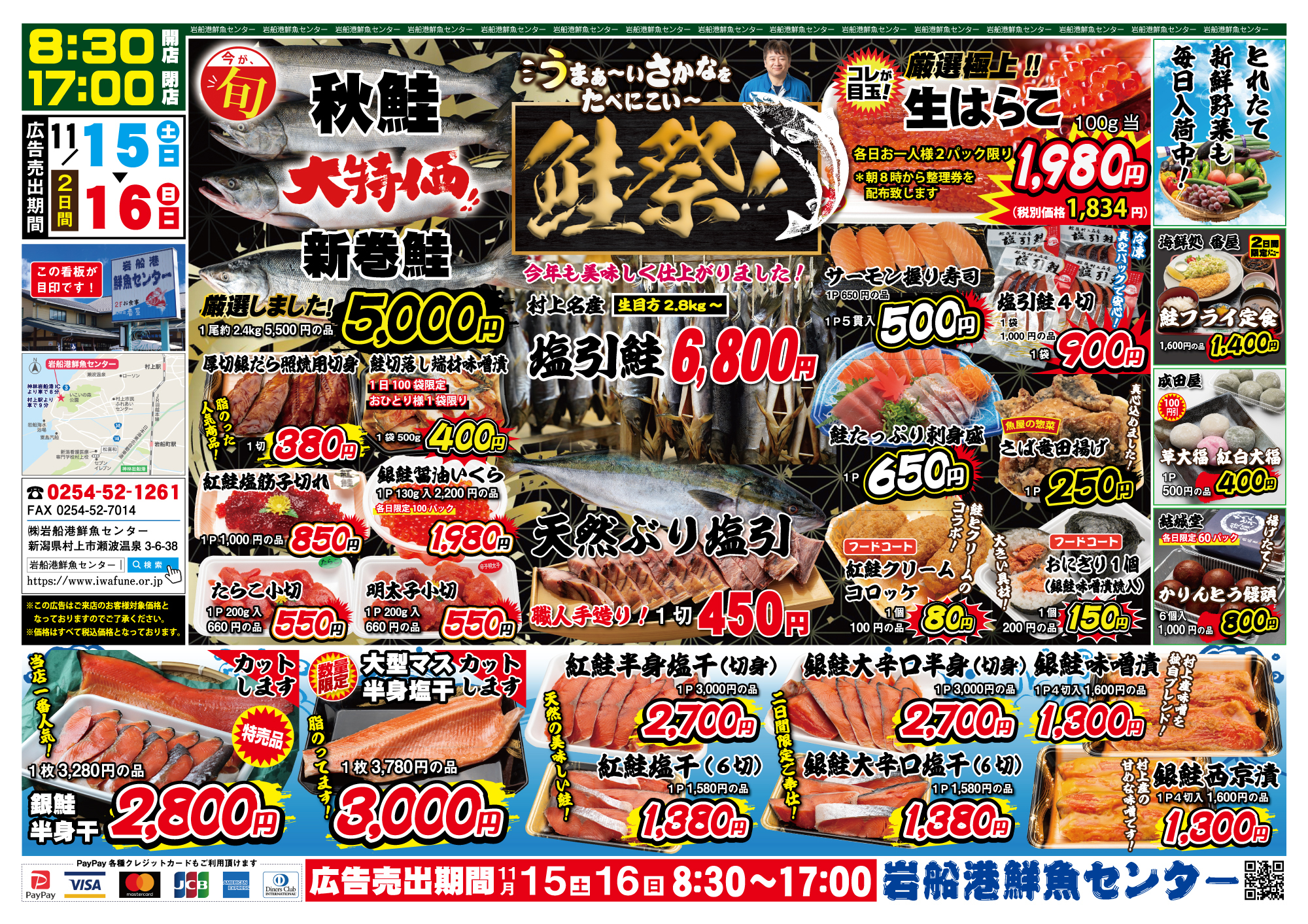鮭祭 11/15・16 イベント情報 ※来店者限定の特別価格となっております。 ,facebook,,{"facebookPageUrl":"https://www.facebook.com/iwafunesengyo","boxHeight":"500","boxWidth":"100","dispFace":true,"dispUpdate":true,"dispHeader":true,"wUnit":"%"}